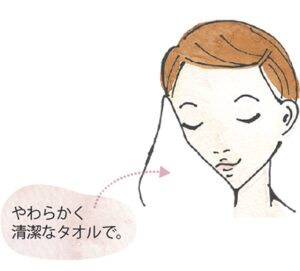 タオルでやさしくおさえるように水分を吸い取ります。ゴシゴシ拭くと肌のキメを痛める原因に。