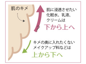 基礎化粧品は、先に水系の成分を肌に送り込み、それを蒸発させないように油系の成分でフタをするのが効果的です。