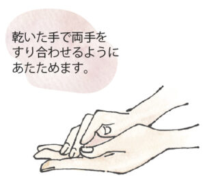手と顔が乾いた状態ではじめます。適量のクレンジング料を人肌程度にあたためます。メイクとのなじみが良くなります。