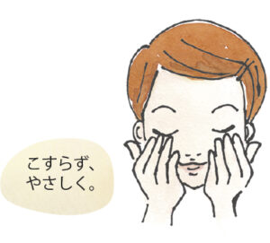 肌が傷つくのを避けるため、手が顔に直接触れないようにします。