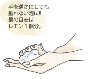 ぬれた手で洗顔料をよく泡立て、メレンゲのような弾力のある泡をたっぷりとつくります。