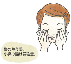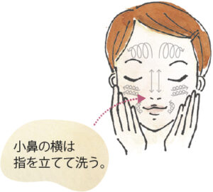 洗顔後は、細部に洗顔料が残っていないか、しっかりと確認しましょう。