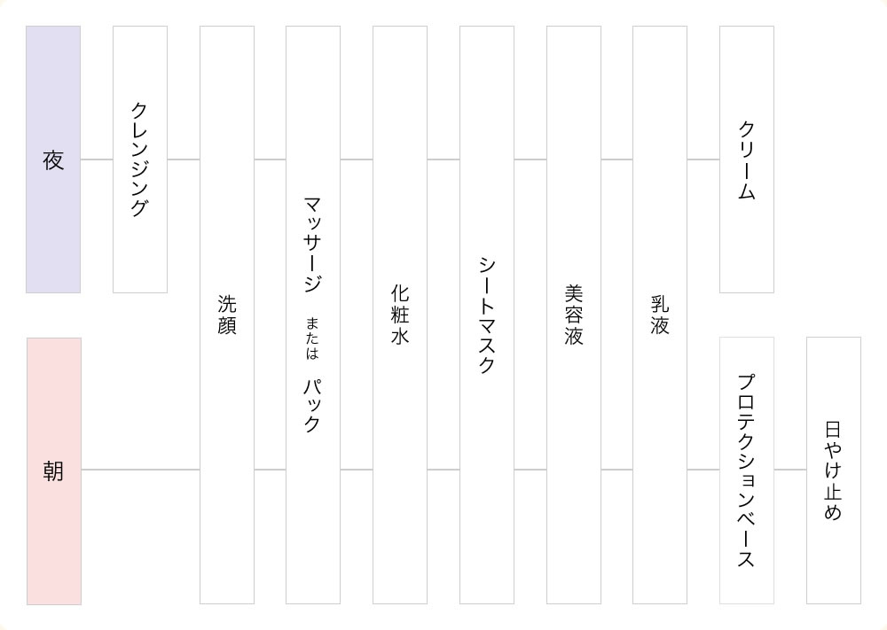 ※シートマスクなど、使用アイテムによって手順が前後する場合があります。詳細は各アイテムの使用手順をご確認ください。