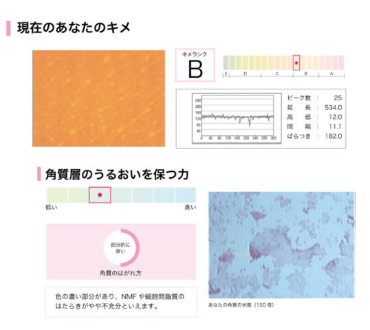 解析結果やレポートのアドバイスを参考に、ご自身に合ったお肌のお手入れにお役立てください♪