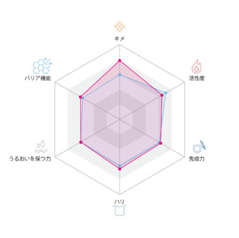 部分的な状態と全体のバランスの両方を視覚的に把握できるため、肌の傾向や、これから意識したいケアの方向性、改善ポイントがひと目で分かります。