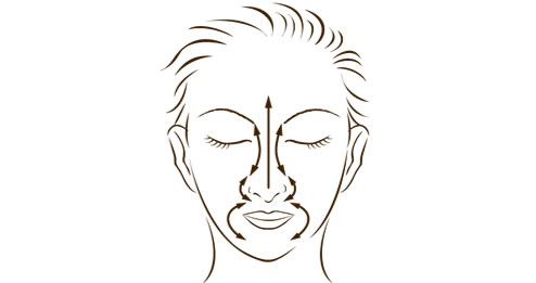 口のまわり、小鼻、鼻すじをマッサージ。(各3回)