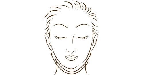 指の腹全体であご先~耳下腺にかけて、らせんを描く。(3回)小鼻~アリキュラにかけても同様に行う。