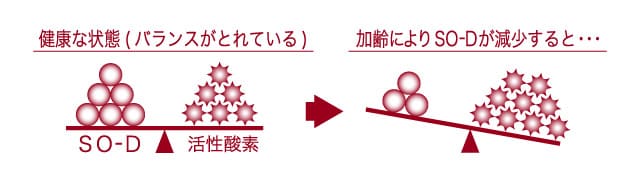 加齢とともにSO-Dを作る機能は次第に衰えます。