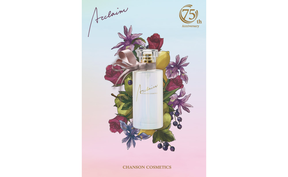シャンソン化粧品は、75周年を迎えます 創業から75年。それはたくさんの女性と出会い、たくさんの「美」に出会ったかけがえのない時間。わたしたちは、これまで以上に肌にも環境にもやさしい、高品質な商品をお届けしてまいります。この先の未来もあなたの美しさとともに。 75周年記念商品 限定フレグランスアクレイム オードパルファン 株式会社シャンソン化粧品は、本年2月11日に創立75周年を迎えます。長年にわたり当社の発展を支えてくださったお客さまをはじめ、関係者の皆さまに心より感謝申し上げます。