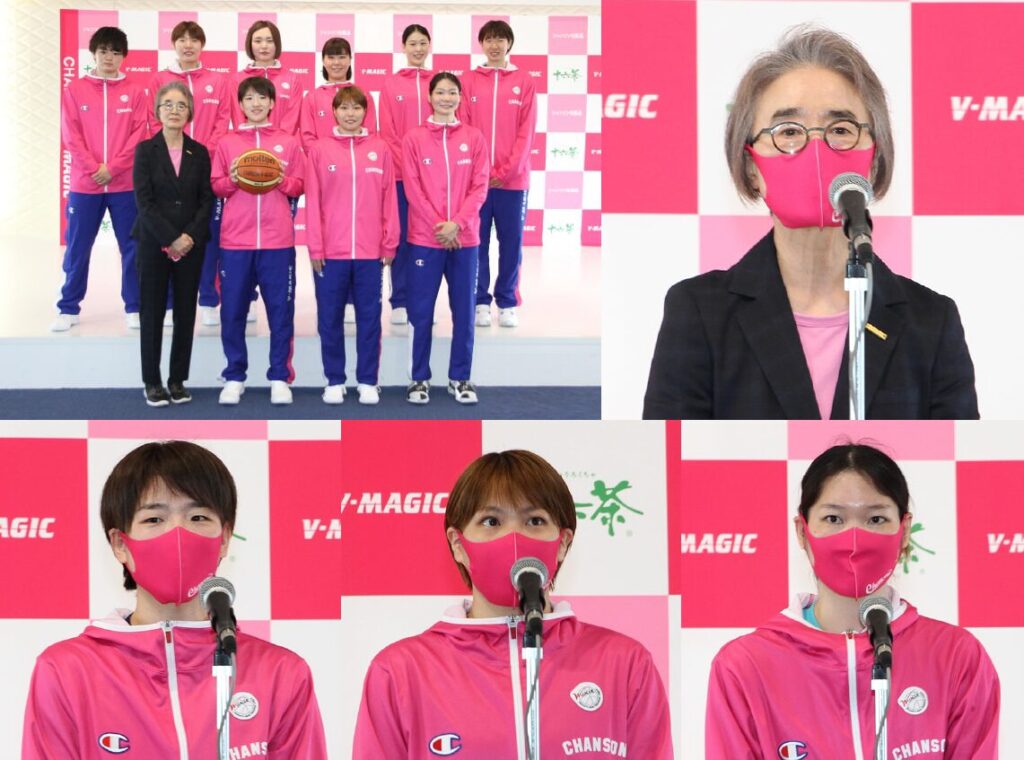2021年6月1日、静岡市のシャンソン化粧品本社にて、検温や消毒、ソーシャルディスタンスの確保など感染対策を徹底した中で「2021-2022シーズン シャンソンVマジック新体制発表記者会見」を開催いたしました。