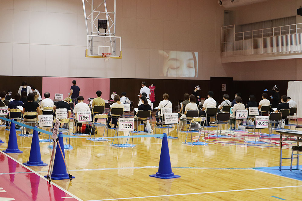 接種会場には、女子バスケットボールチーム シャンソンVマジックの選手たちが練習を行っているシャンソン化粧品敷地内の体育館「美アリーナ」を使用しました。