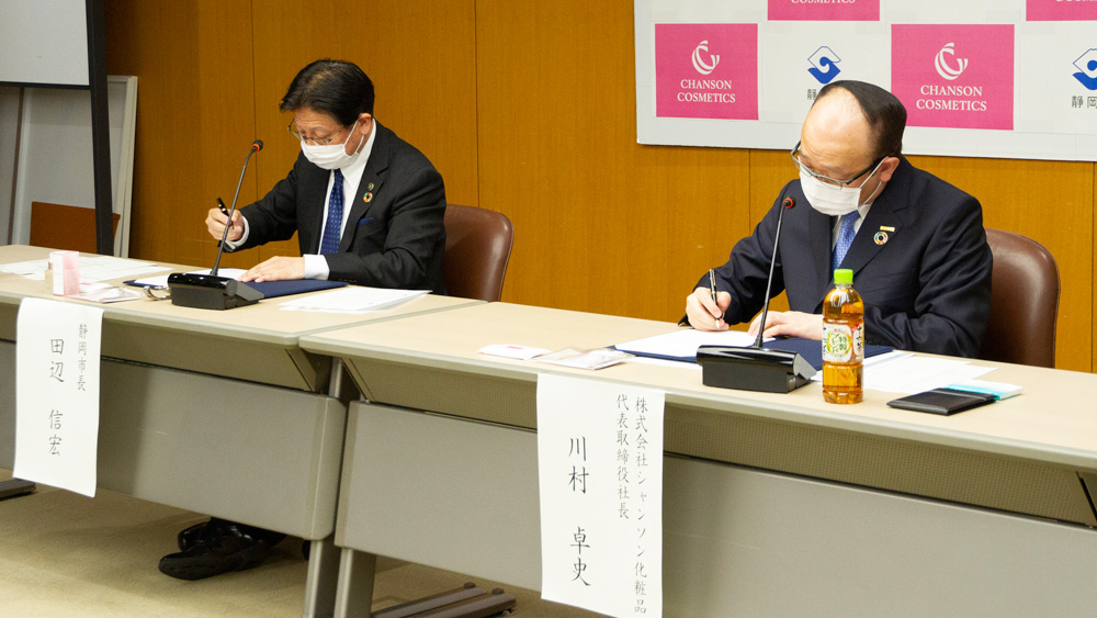 このたび、株式会社シャンソン化粧品(本社:静岡県静岡市、代表取締役社長川村卓史)は、「静岡市」と地方創生の推進に向けた連携に関する協定『包括連携協定』を結び、2023年3月15日(水)に静岡市役所にて締結式が行われました。