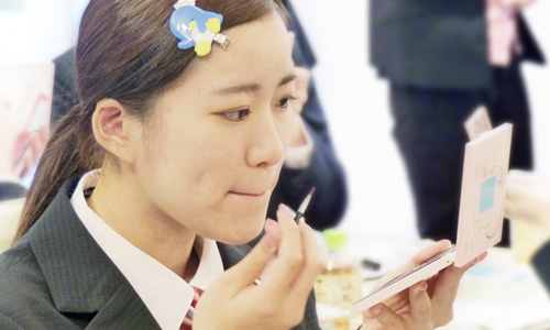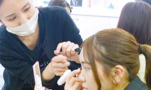 シャンソン化粧品では、社会貢献活動の一環として、就活生や新入社員を対象にスキンケアやメイクアップのセミナーを行なっています。