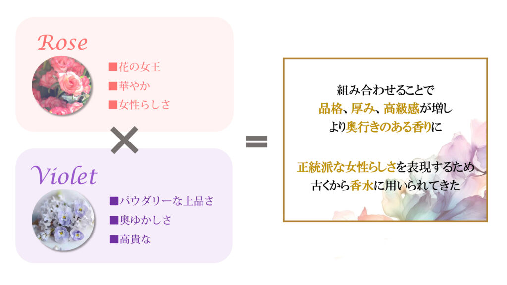 杉山: そしてバイオレットはローズと組み合わせることでさらに香りの印象が引き立つんですよね。