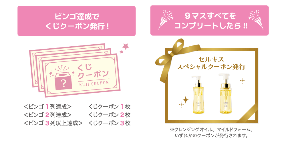 <9マスすべて達成> セルキス クレンジングオイル または マイルドフォーム のクーポン1枚 ※3