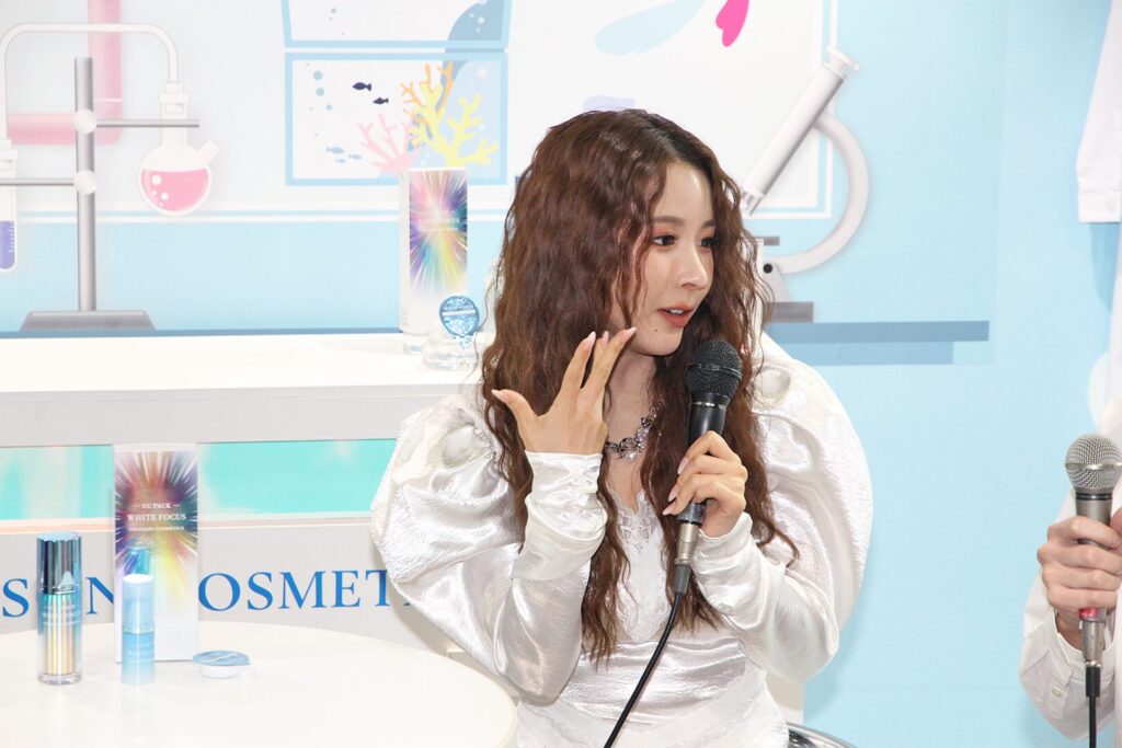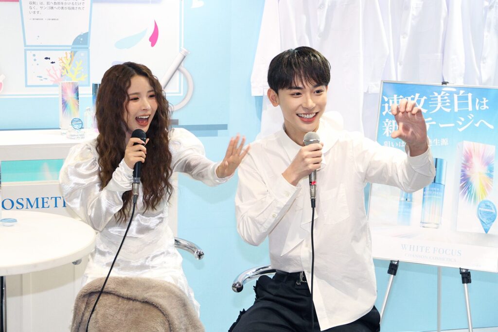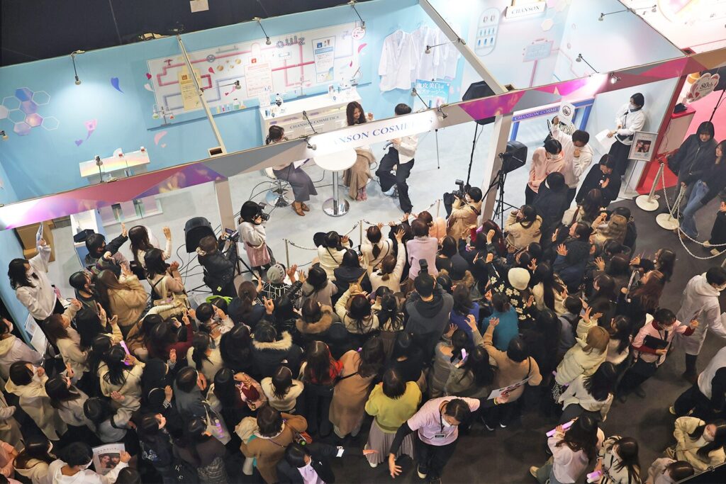 さらに、シャンソンのスキンケアブースでは、ステージに登場したよしあき&ミチさんによるトークショーを開催。シャンソンステージを歩かれた感想や、2月にリニューアルする美白ブランド「ホワイトフォーカス」にちなんで、肌の透明感を保つためのケアについて話していただきました。トークショーを間近で見ようと、ブースには多くの方々が訪れ、大盛況となりました。