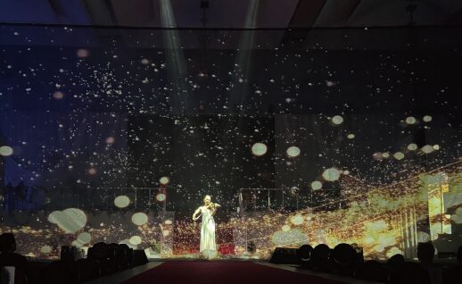 式典のオープニングを飾ったのは、世界的に活躍するヴァイオリニスト・川井郁子氏による特別演奏。プロジェクションマッピングやフュージョンウォールの映像演出と融合した圧巻のパフォーマンスで、80周年の記念式典の幕開けにふさわしい華やかな空間を演出しました。