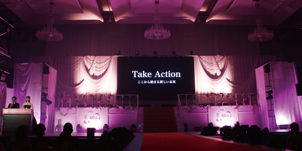 本イベントは、全国のシャンソン化粧品特約店の皆様を対象に、日頃のご尽力に感謝を込めて、ご招待させていただく場として開催しており、今年は創業80周年のアニバーサリーイヤーとして、過去最多となる1,100名以上が参加。「Take Action ~ここから始まる新しい未来~」のテーマのもと、特別ゲストにヴァイオリニストの川井郁子氏を迎え、節目を祝うにふさわしい多彩なプログラムが披露されました。