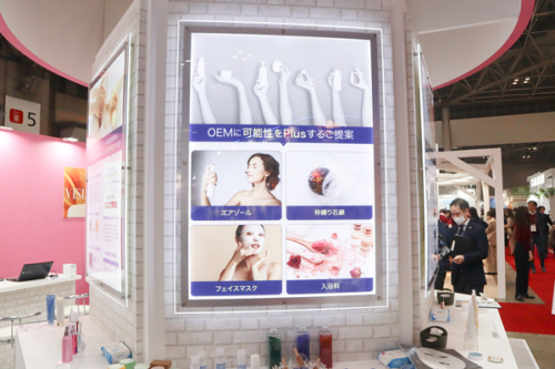 今回の展示では、自社ブランドで磨き上げたサロンクオリティの化粧品やユーザーのお肌と環境に配慮したオーガニック認証処方・ナチュラル処方を幅広く用意させていただきました。また、右肩上がりで伸長しているペット市場への参入をサポートするべく、化粧品メーカー発想のペット用商材も多数展示させていただきました。