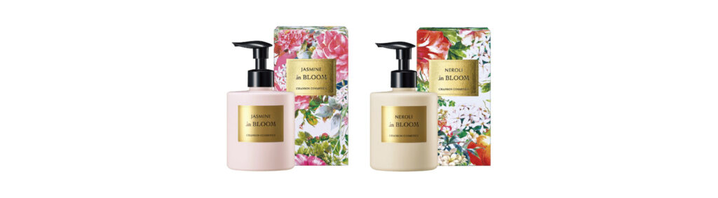 素肌にうるおいを与えながら全身を上質な香りで包み込む「インブルーム フレグランスボディミルク」は、ジャスミンとネロリの2種類の香りで展開。ここちよい花々の香りに包まれながら、やさしいひとときをぜひご堪能ください。