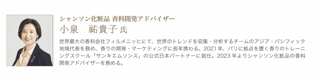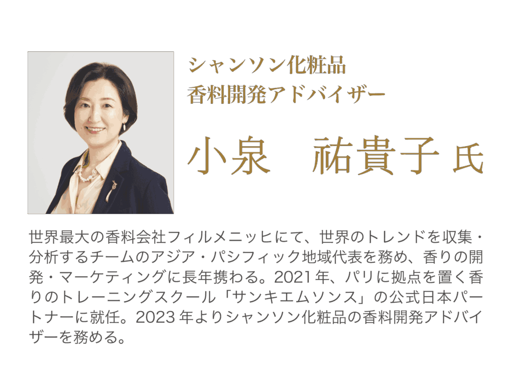 香りは、シャンソン化粧品の香料開発アドバイザー 小泉氏が監修。春夏のお手入れにぴったりな爽やかでここちよい香りに仕上げました。
