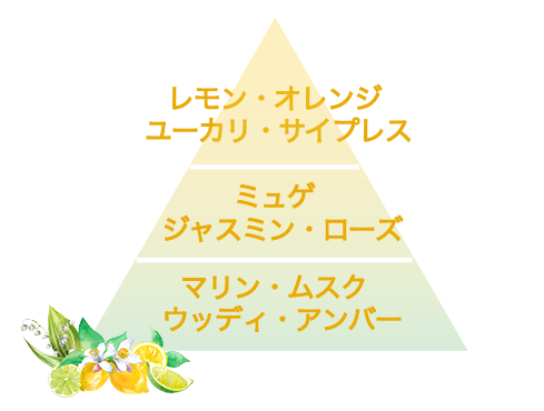 涼やかなシトラスやハーブとみずみずしく軽やかなフローラルが奏でる透明感に満ちた香り。