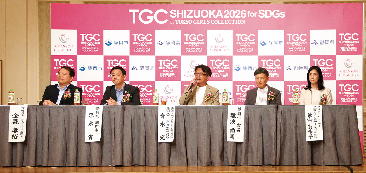 2026年1月10日(土)にツインメッセ静岡 北館大展示場にて、『SDGs推進 TGC しずおか 2026 by TOKYO GIRLS COLLECTION(以下、SDGs推進 TGC しずおか 2026)』の開催が決定し、2025年8月5日(火)に静岡市内で記者発表が行われました。静岡での開催は2025年1月につづき6回目となり、シャンソン化粧品が6回連続でプラチナパートナーとして特別協賛することを表明しました。