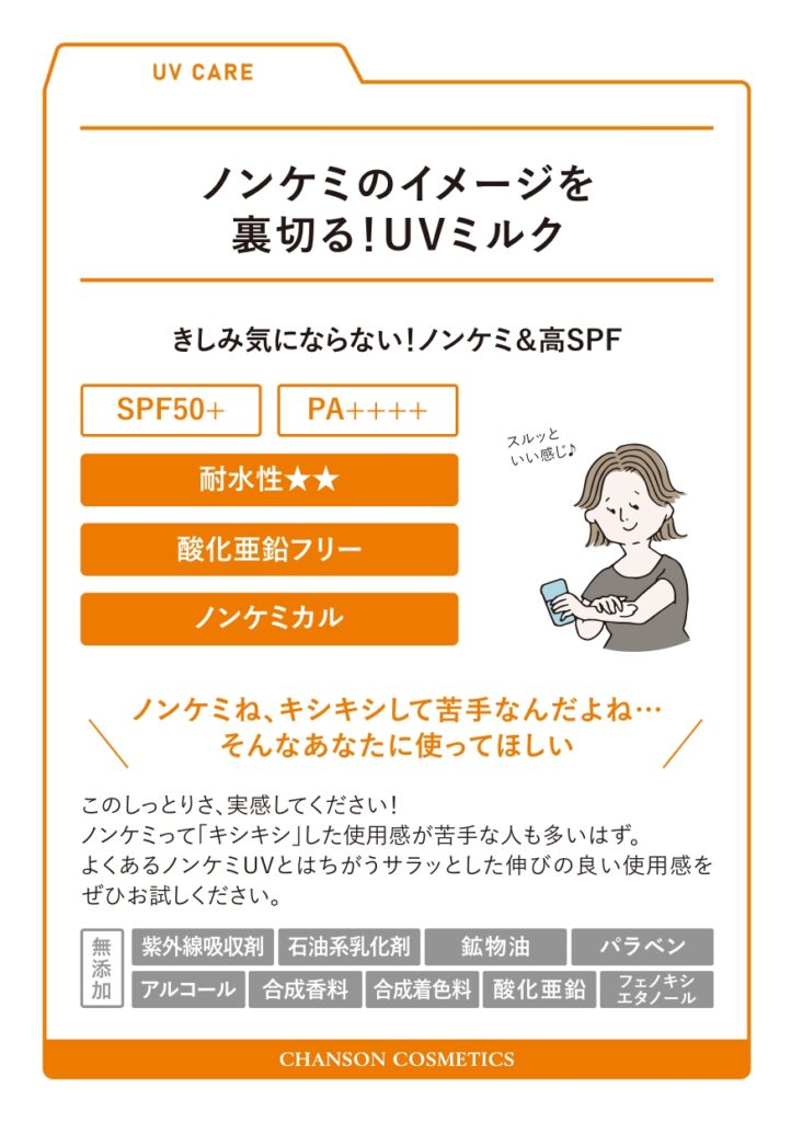 ノンケミのイメージを裏切るUVミルク(W/O)