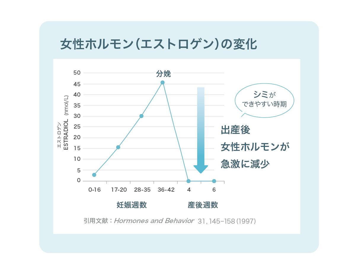 シミができる主な原因は紫外線ですが、「1か月のリズム」「産前産後」「更年期」などのホルモンバランス変化によるストレスも、過剰なメラニンがつくり出されるきっかけに。メラニン合成の引き金となる要因を様々な角度から防ぎます。