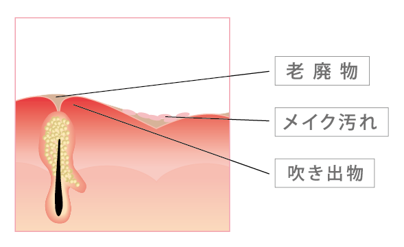 メイク汚れが肌に残ったままだと、毛穴の開きや黒ずみ、シミ、シワ、くすみといったさまざまな肌トラブルの原因に!32℃のW洗顔でしっかりと汚れを落としましょう!