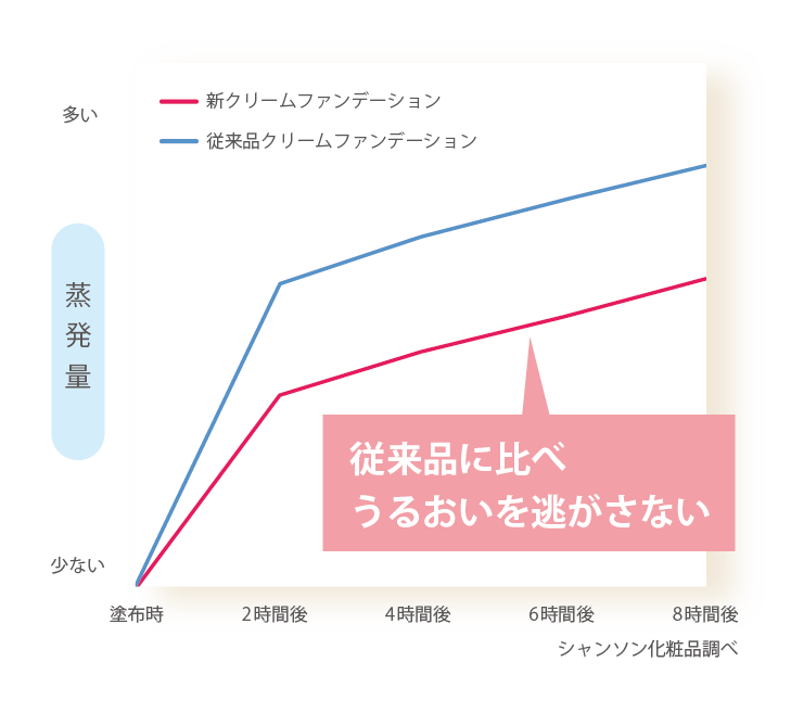 秋冬は湿度が低く、肌の乾燥が気になる時期。新クリームファンデーションはうるおいを閉じ込める力が加わり、長時間しっとりした質感に。