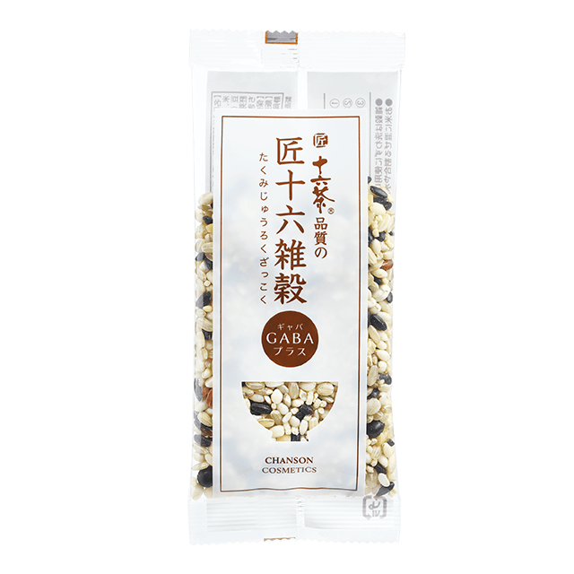 「十六茶品質の匠十六雑穀 GABAプラス」には、GABAを含む発芽玄米や青肌玄米に加え、サトウキビを発酵させてつくったGABAそのものを原料として配合しています。