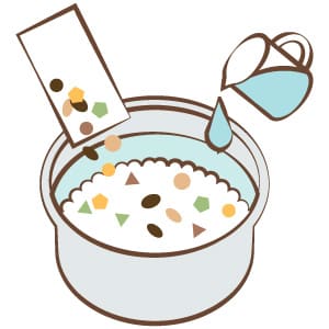 お米2合を研ぎ、白米を炊く時と同じ水加減にします。