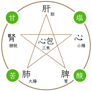 人体は六臓・六腑※から構成され、体の主となる肝・心・脾・肺・腎・心包(別名:火包、心臓を大事に包む袋)を「六臓」、また臓を助ける胆・小腸・胃・大腸・膀胱・三焦(血液)を「六腑」と言い、健康とは六臓六腑の全てのバランスが保たれている状態を現します。