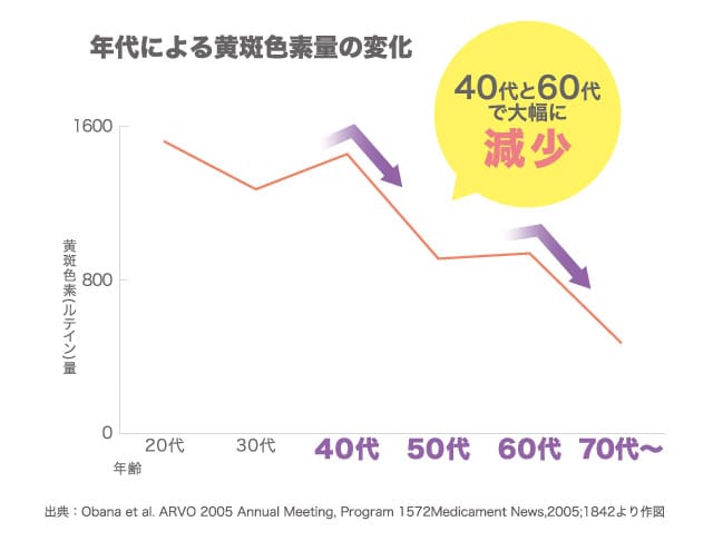 色や物を識別したり、光の刺激から目を守る黄斑色素が減ると…