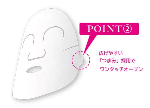シートマスクは、フィット感抜群の伸縮性のある生地ですので、つまみをゆっくりと左右に引いてシートを広げてください。