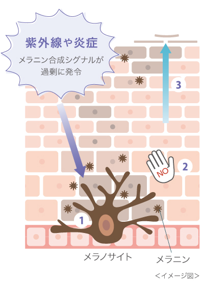 メラニン合成の引き金となる要因を様々な角度から防ぎ、