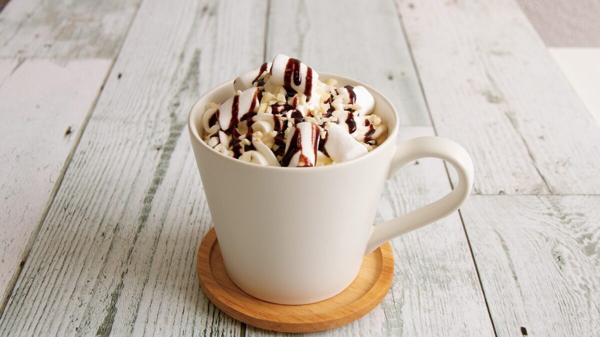 - ホイップクリーム→マシュマロの順にトッピングし、チョコソースやアーモンドダイスをかけたらできあがり!
