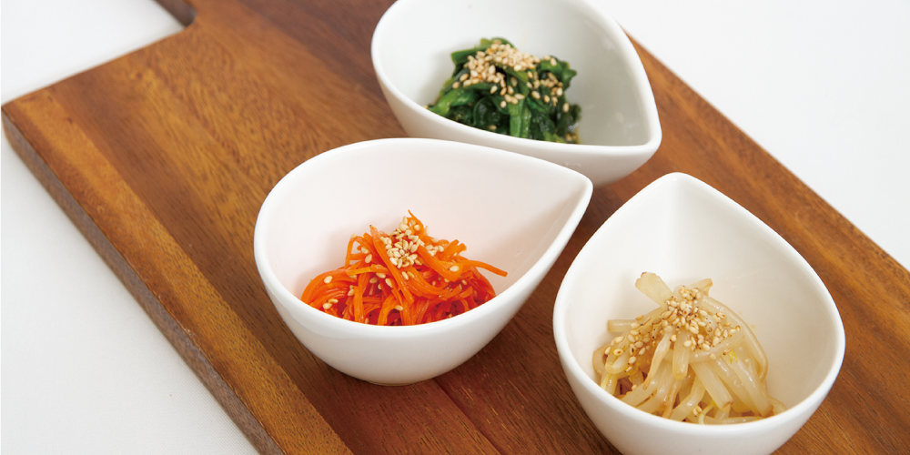 - 野菜の水気を切り、それぞれの野菜にAを1/3ずつ和え、白ごまをかけたらできあがり!