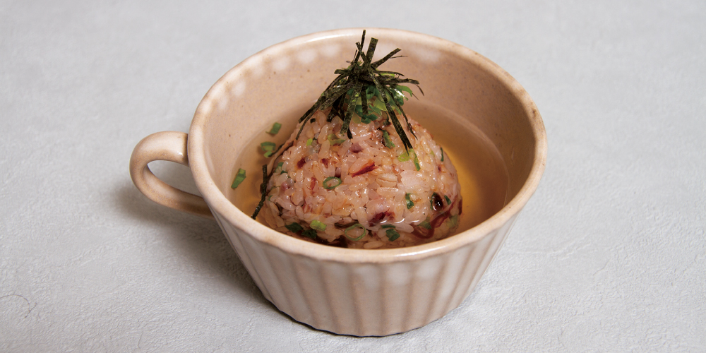 - 器に雑穀おにぎりを1個ずつ盛り付け、1をかける。