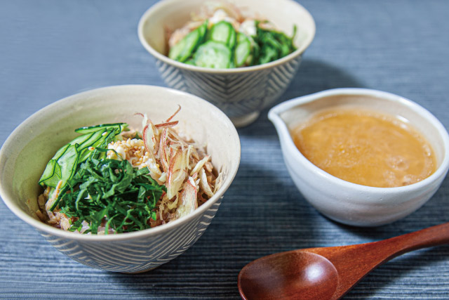 - ボウルにツナと味噌を入れよく混ぜ、冷水とめんつゆを加えてさらに混ぜる。