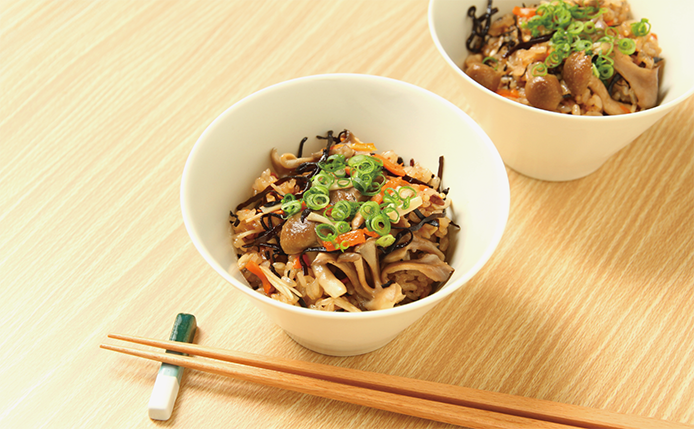 - 炊きあがったら塩昆布を混ぜ込み、小ねぎを散らす。 器に盛ったら出来上がり。