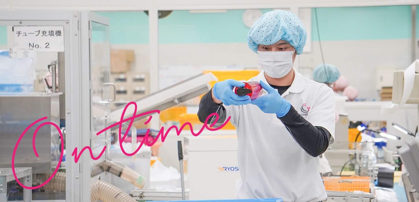 私が充填を担当している製品のひとつです。季節を問わず、常に沢山の生産を行っているので、多くのお客様に愛され、使用していただいていることを実感しています。シャンソン化粧品に入社するまでW洗顔をした事がなかったので、実際に使用した時の潤った肌の衝撃は今でも印象に残っています。