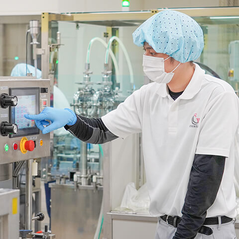 初めて充填を担当した製品は、ヘアケア・ボディケアアイテムの「アロマリーフシリーズ」でした。使ったことのない機械で、一つひとつ丁寧に容器に詰めていく細やかな作業に最初は苦戦しました。はじめて上手に充填できたときの“嬉しかった感覚”は今でも鮮明に覚えています。現在は少しずつ仕事も覚え、毎日異なった製品の充填を任されています。充填はチューブやボトル、パウチなど、容器の形状によって使用する機械が異なり、容量や容器の形状に合わせて設定も変えていかないといけないので難しい部分もあります。しかし試行錯誤し、順応できたときはとても嬉しく、達成感を味わうことができます。このように若手社員でも多くの経験を積ませてもらえるのは、シャンソンの良いところだと思います。