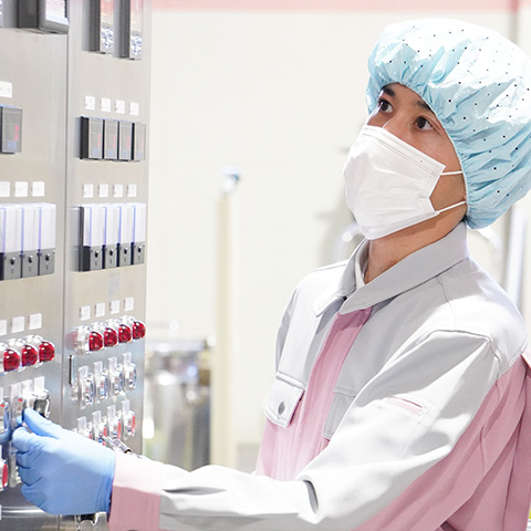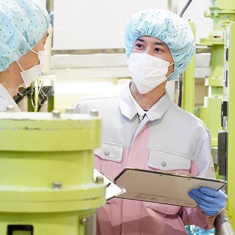 生産部製造課という部署で、主に化粧品の中身に関わる製造工程を任されています。化粧品の製造は大小様々な機械を用いて調合・調製を行うため、それらを取り扱う技術や原料知識を身に付けることはもちろん、日々の各設備のメンテナンス・維持も重要な仕事です。製造業は目標とする生産数が常に設定されているので、「いかに効率的に進めるか」「品質を高く維持できるか」が大切となります。効率的に作業するにあたっての手順を決めること、新たなトラブルを引き起こさないように品質を高めた仕組みづくりすることは決して容易ではないですが、自分が携わった製品を世の中の多くの方に手に取ってもらい、使用していただいていることが工場内で仕事をしていても耳に入ってくるので、やる気が促進されて頑張ろうと思えます。